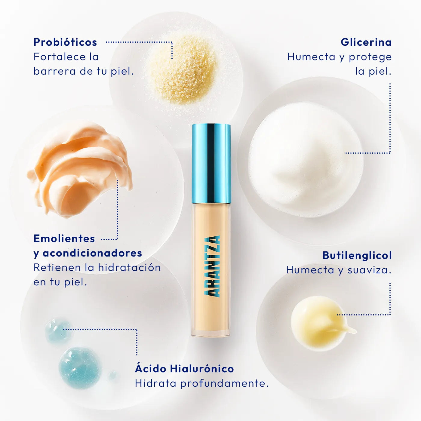 Este innovador producto ha sido diseñado para darte una máxima cobertura que cubre a la perfección todo tipo de imperfecciones, su fórmula hidratante con ácido hialurónico corrige la pigmentación al tiempo que cuida la delicada piel del área de las ojeras, brindándote confort y una dosis de hidratación.