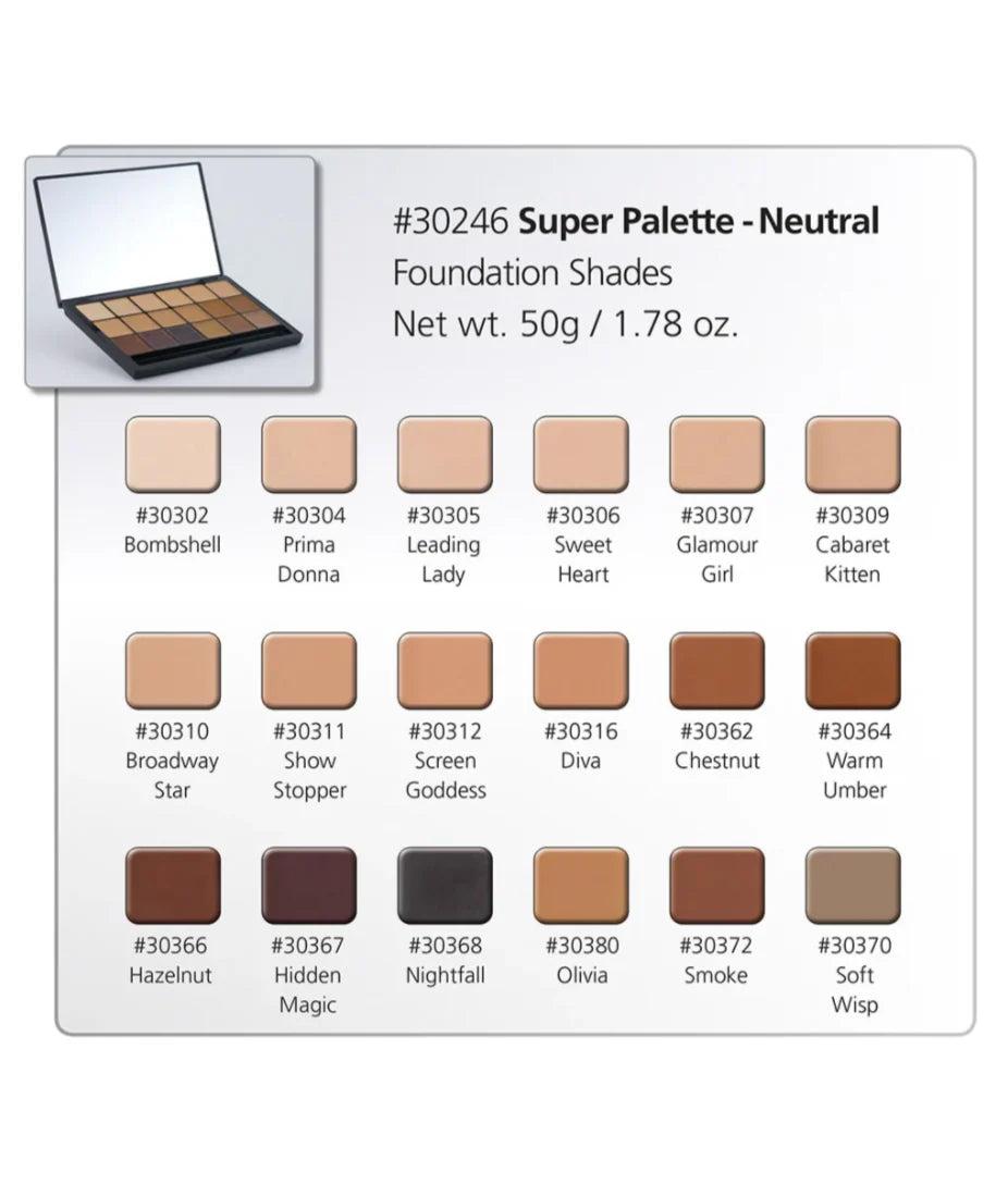 Cada paleta contiene toda la gama de colores por subtono: cálido, neutro y frío. Recomendamos que los maquilladores comiencen con la paleta cálida, ya que los matices cálidos / amarillos son más comunes que los neutros o fríos.